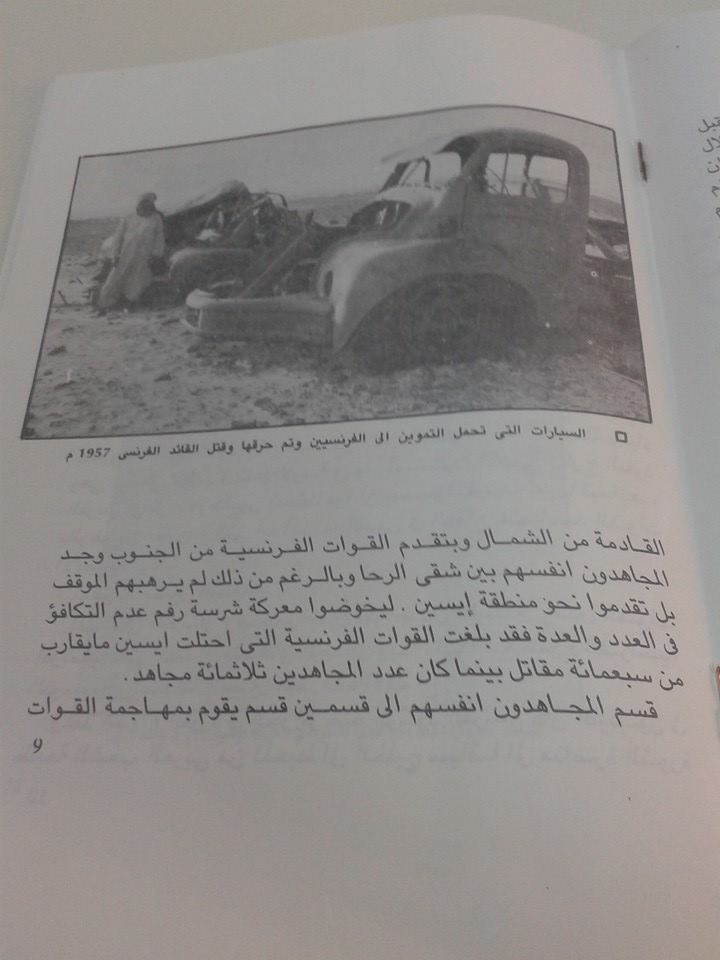 وقد اقتبس د. عميراوي ذلك من كلمة الفريق نوري الصديق القائد الذي أدار معركة إيسين … مع زملاءه ضباط الجيش الليبي سنة 1957 ” ( ص. 163 ) الصورة الملونة من أسامة الثني، .واﻷخريتان من الكتيب المشار إليه.