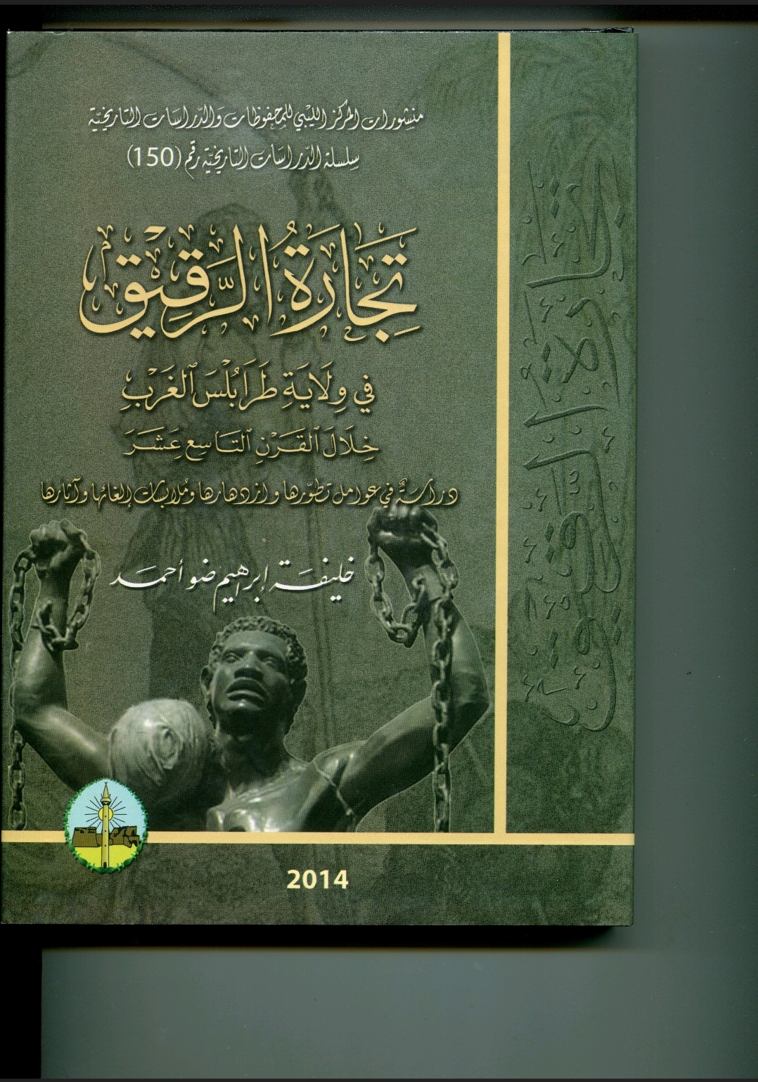 صدر عن المركز الليبي للمحفوظات والدراسات التاريخية للأستاذ خليفة إبراهيم ضو أحمد كتاب بعنوان ” تجارة الرقيق في ولاية طرابلس الغرب خلال القرن التاسع عشر – دراسة في عوامل تطورها وازدهارها وملابسات إلغائها وآثارها ” ، ويقع الكتاب في ( 264 ) صفحة ، وهو ضمن منشورات العام 2014 م.