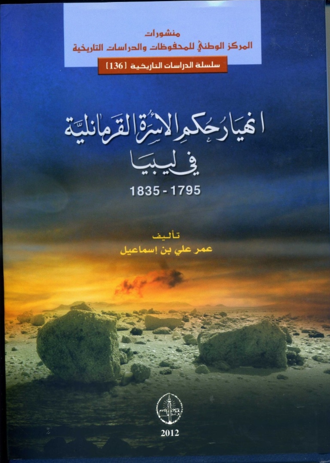 من الكتب المميزة التي صدرت في طبعتها الثانية عام 2012م ضمن سلسلة الدراسات التاريخية (136) كتاب بعنوان ” انهيار حكم الأسرة القرمانلية في ليبيا 1795 – 1835 ” للأستاذ عمر علي بن اسماعيل بعد أن نفذت الطبعة الولي التي نشرت خلال العام 1966م، ويشتمل هذا الكتاب على تمهيد وخمسة فصول ، استعرض المؤلف في التمهيد الحالة السياسية لليبيا قبل مجيء العثمانيين لها، وفترة الحكم العثماني، والعوامل التي ساعدت على قيام حكم الأسرة القرمانلية ، وأحمد باشا القرمانلي وصلته بالدولة العثمانية، وموقفه من الثورات الداخلية وتناول الفصل الثاني ” خروج الحكم من الأسرة القرمانلية واستعادته فيما بعد حيث تولى سدة الحكم محمد باشا ثم علي باشا، وحدوث بعض الاضطرابات التي أفضت إلى احتلال طرابلس من قبل ” علي الجزائرلي، ولكن بمساعدة ” باي تونس” أسترد القرمانليون حكمهم الذي تولاه يوسف باشا وتناول الفصل الثاني” سياسة يوسف باشا الخارجية وعلاقاته بالولايات الإسلامية ، وبالدول الأوروبية وقيامه بتأمين البحر الأبيض المتوسط، وإلغاء الرق، وخصص المؤلف الفصل الثالث لسياسة يوسف باشا الداخلية من حيث النظام الإداري، والقضاء والتعليم، والصناعة والزراعة، والتجارة، والجيش والأسطول، وفي الفصل الرابع تناول المؤلف ” اضطراب الحكم وتنازل يوسف باشا عن الولاية” حيث ضعفت شخصيته وازداد نفوذ القناصل، و تدهورت الأحوال الاقتصادية، وقامت الثورات الداخلية. وفي الفصل الخامس تتبع الباحث ” النزاع الأسري وسقوط الحكم القرمانلي، ومصير أفراد الأسرة القرمانلية بعد سقوط دولتهم.